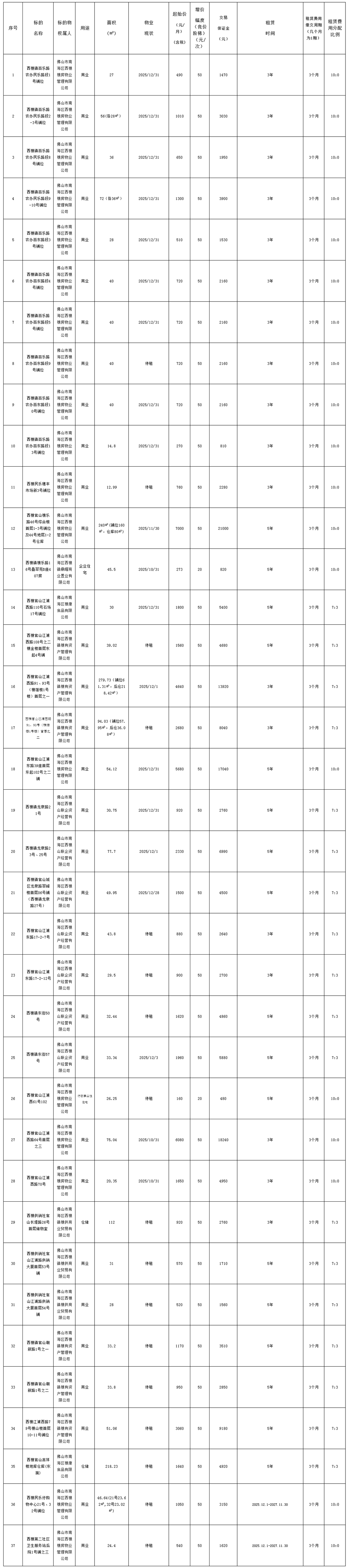 概述:西樵镇百乐路农办百东路段10号铺位;西樵镇百乐路农办百东路段13号铺位;西樵民乐穗丰市场新3号铺位;西樵官山樵乐路46号综合楼首层1-3号铺位及44号地层1-2号仓库......