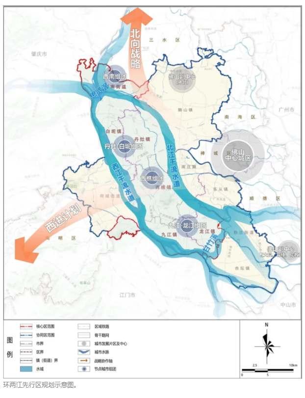 今年初,佛山市委提出以西江、北江交汇环抱的6个镇街为核心区,以及周边6个镇街为协同区,规划建设环西江—北江区镇村高质量发展先行区。点击查看环两江先行区建设意见