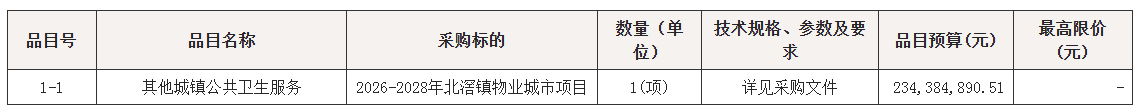 > 2026-2028年顺德北滘镇物业城市项目招标公告