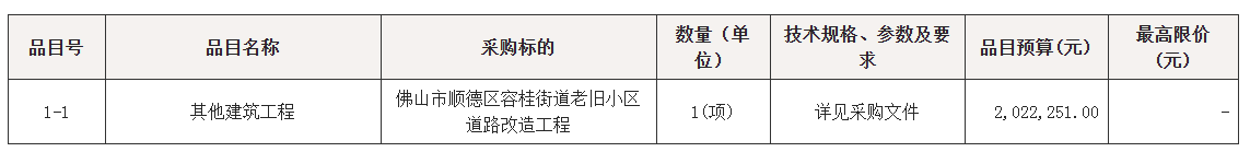 采购包1(佛山市顺德区容桂街道老旧小区道路改造工程):