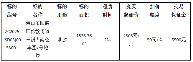 1.项目名称:佛山市顺德区伦教街道三洲大南稔丰围7号地块公开招租项目