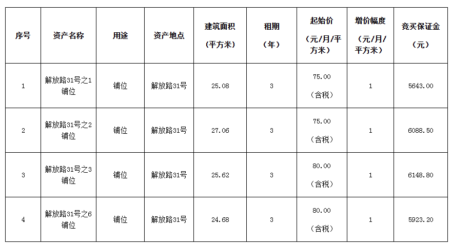 3.竞买人存在拖欠出租人租金情况的,须在报名截止前缴清所欠租金及罚金,方可参与本次竞买。