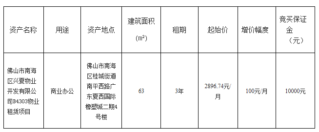 > 佛山市南海区兴夏物业开发有限公司B4303物业租赁项目