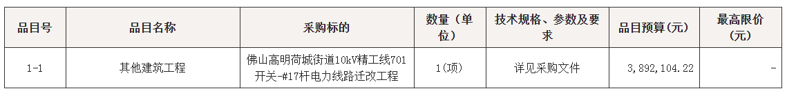 采购包1(佛山高明荷城街道10kV精工线701开关-#17杆电力线路迁改工程):