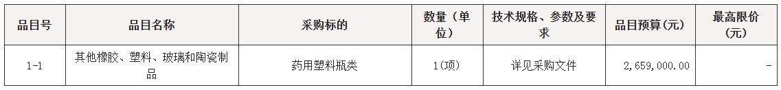 药用塑料瓶类招标项目的潜在投标人应在广东省政府采购网https://gdgpo.czt.gd.gov.cn/获取招标文件,并于 2025年12月02日 09时30分 (北京时间)前递交投标文件。