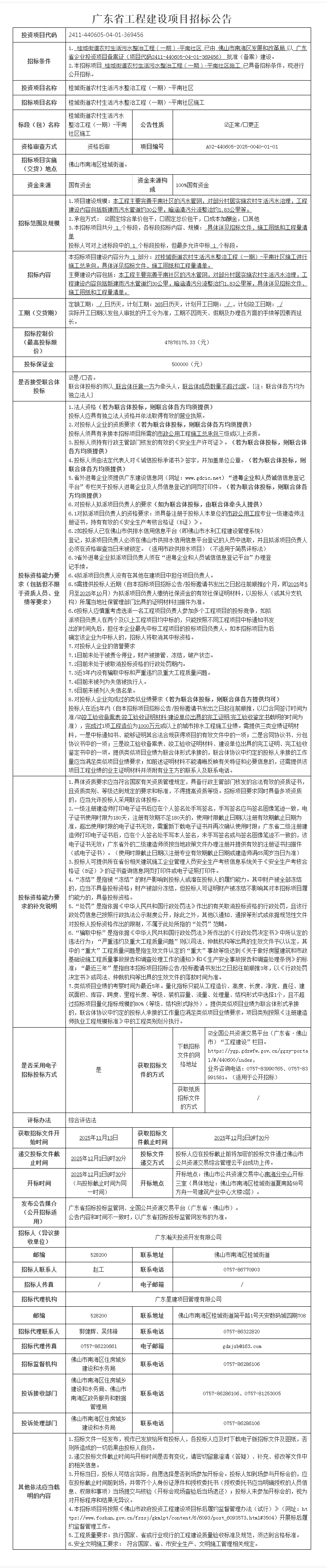 南海桂城街道农村生活污水整治工程(一期)-平南社区施工招标公告