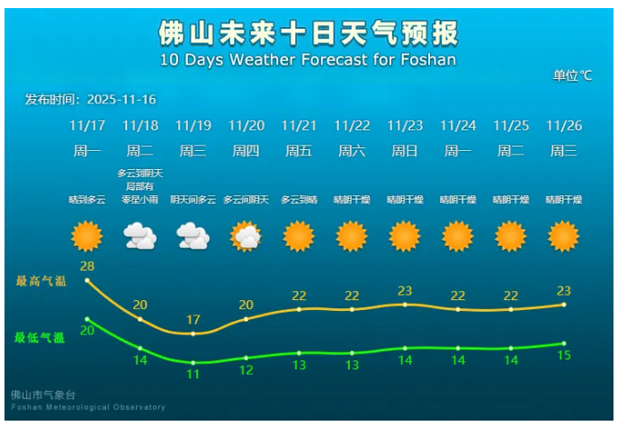 据佛山市气象台最新研判,这股强冷空气将带来持续的干冷天气。18日至20日,佛山气温将逐日走低,过程日平均气温降幅7~9℃,风力也会明显加大。佛山市气象台预报工程师曾振杰补充说,虽然此次降温幅度较大,但未达到寒潮标准。20日后气温将开始缓慢回升,不过在冷高压控制下,未来一段时间最高气温都不会超过25℃。