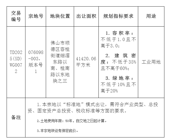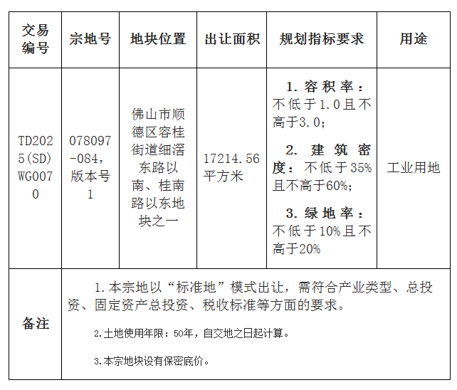 五、有意参与竞买者可于2025年11月17日后登录网上交易系统下载TD2025(SD)WG0070地块的《佛山市顺德区国有建设用地使用权网上挂牌出让文件》。