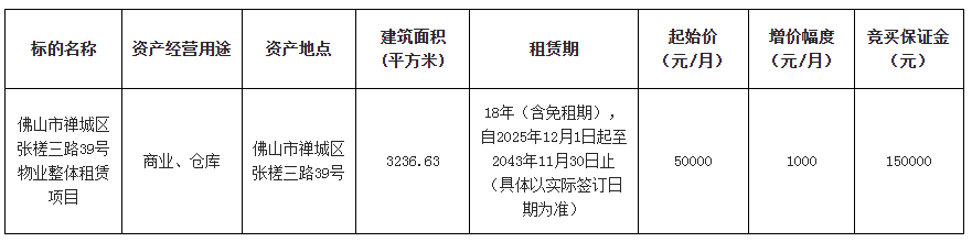 4.免租期:升级改造免租期6个月,自2025年12月1日起至2026年5月31日止,升级改造免租期间免收竞得人的租金。