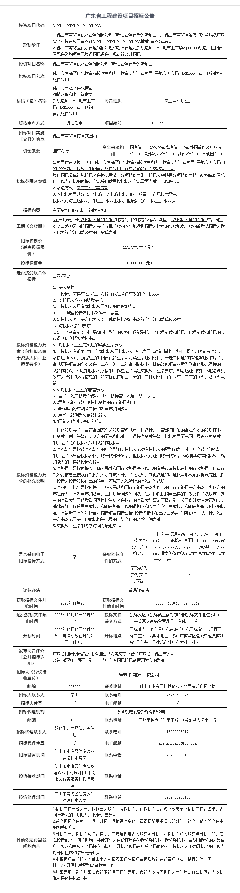 南海中心城区公共区域照明设施更新改造项目-南海中心城区公共区域村居及人行道功能性照明提升改造项目招标公告