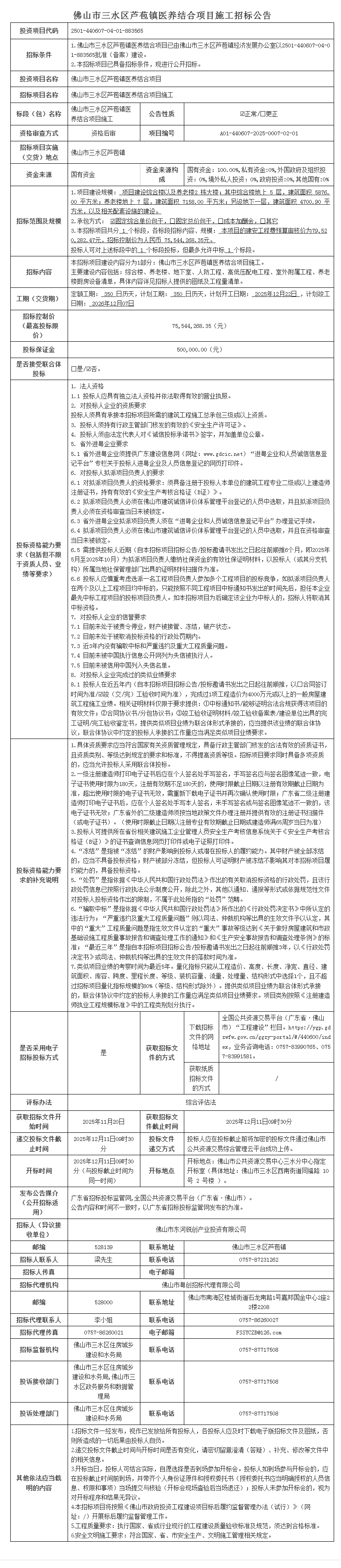 佛山市南海区解放水系水环境综合治理项目-一标段支毛涌整治工程招标公告