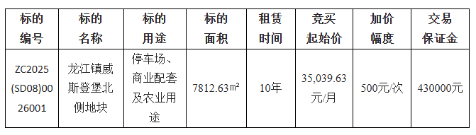 1.项目名称:佛山市顺德区龙江镇威斯登堡北侧地块二次公开招租项目