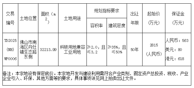 经佛山市人民政府批准,佛山市自然资源局决定委托佛山市公共资源交易中心南海分中心采用网上拍卖方式出让下列地块的国有建设用地使用权。现将有关事项公告如下: