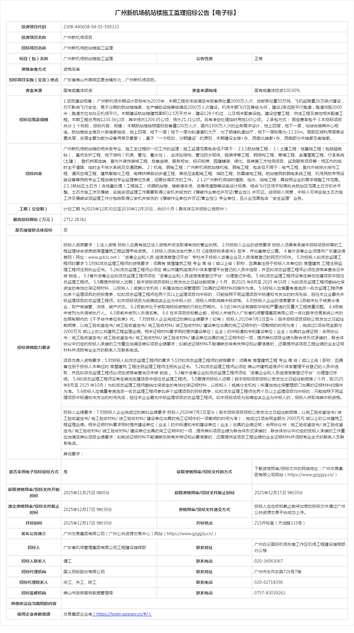 广州新机场项目_广州新机场航站楼施工监理招标公告