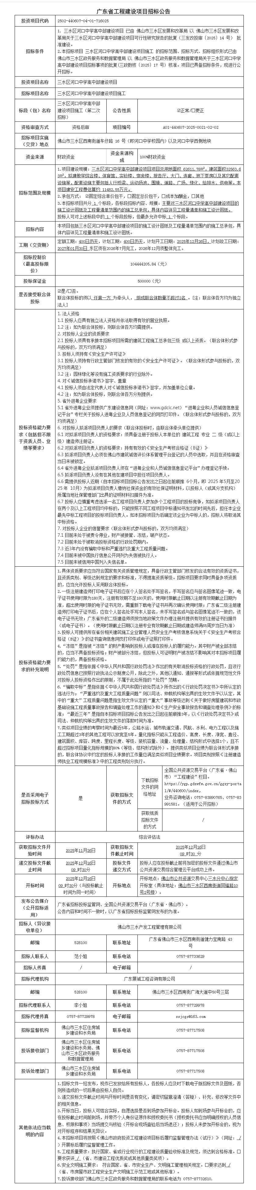 南海桂城瀚天专精特新产业园(三山东区园)项目高压变配电工程招标公告