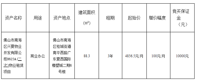 佛山市南海区兴夏物业开发有限公司B623A(二次)物业租赁项目