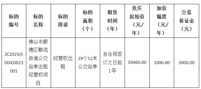 1.项目名称:佛山市顺德区勒流街道公交站亭出租经营权项目