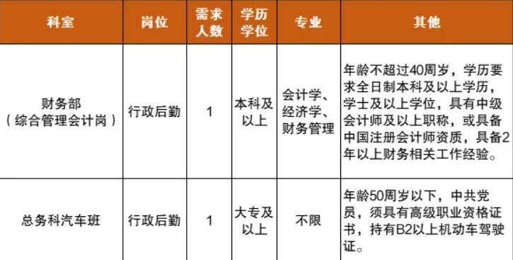 1.本科及以上学历,不限专业,35岁(含)以下,具有2年以上市场营销相关经验,中共党员优先,有银行类金融机构对公条线的相关工作经验优先;