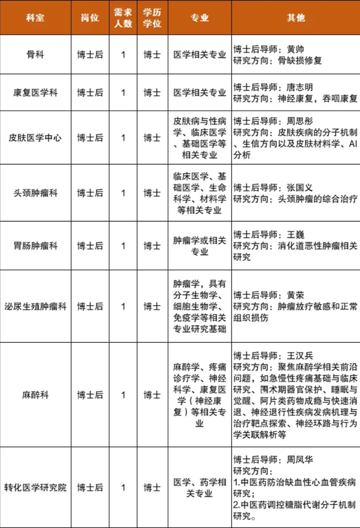 佛山市根据在站博士后课题申报情况给予等额补贴科研经费,单个项目最高不超过20万元。市财政给予30万元生活补贴(每年15万元),医院 1:1 配套生活补助。