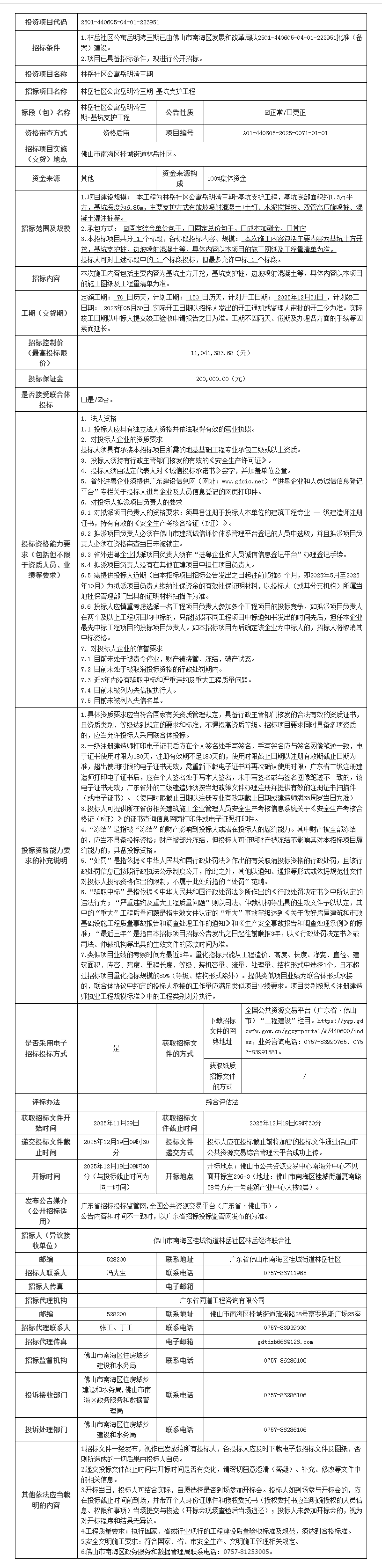 南海桂城林岳社区公寓岳明湾三期-基坑支护工程招标公告