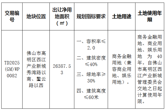 五、有意参与竞买者可于2025年12月1日后登录网上交易系统下载该地块的《佛山市高明区国有建设用地使用权网上拍卖出让文件》。