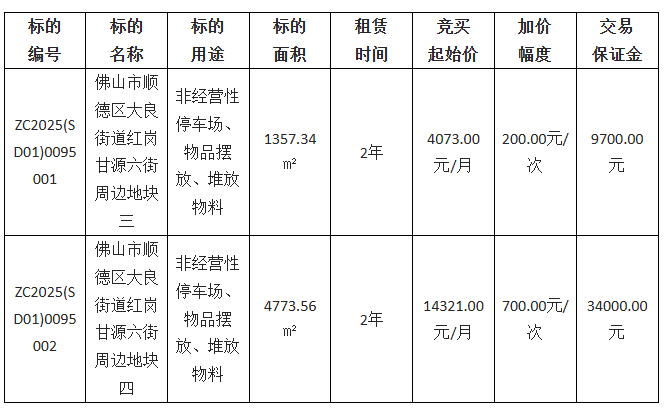 佛山市顺德区景良投资发展有限公司采用网上竞价方式佛山市顺德区大良街道红岗甘源六街周边地块三等2宗地块出租项目(二次),欢迎符合资格的竞买人参与竞价。