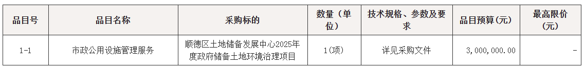 顺德区土地储备发展中心2025年度政府储备土地环境治理项目招标公告