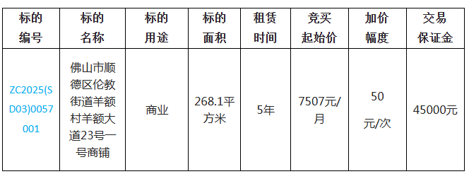 1.项目名称:佛山市顺德区伦教街道羊额村羊额大道23号一号商铺公有物业公开招租项目