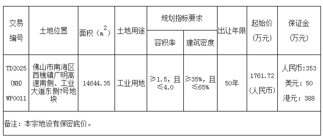 经佛山市人民政府批准,佛山市自然资源局决定委托佛山市公共资源交易中心南海分中心采用网上拍卖方式出让下列地块的国有建设用地使用权。现将有关事项公告如下: