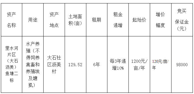 > 南海里水河片区(大石沥美)鱼塘二标租赁项目