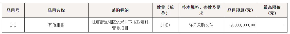 项目名称:祖庙街道辖区25米以下市政道路管养项目