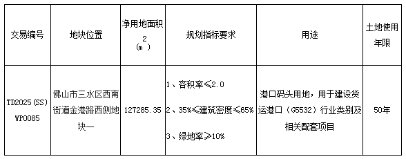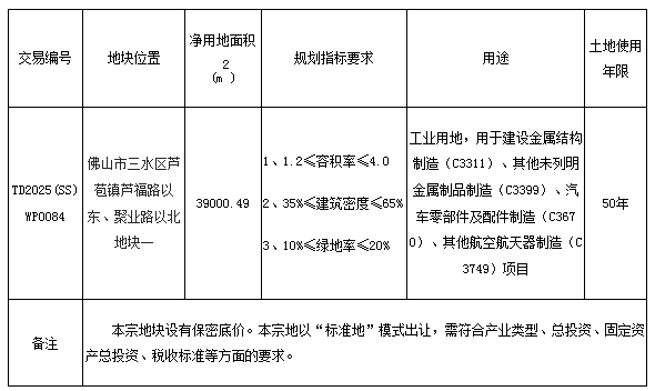 五、有意参与竞买者可于2025年12月4日后登录网上交易系统下载TD2025(SS)WP0084地块的《佛山市三水区国有建设用地使用权网上拍卖出让文件》。