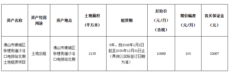 2.佛山市公共资源交易中心南海分中心通过佛山市资产交易网上交易系统及粤公平网站发布的项目信息(包括但不限于公告信息、交易文件、合同条款等)并不构成佛山市公共资源交易中心南海分中心对项目的任何交易建议。意向竞买人应不依赖于已披露的项目信息并自行对项目的相关情况进行必要的尽职调查和充分了解,对是否竞买该项目及项目成交后可能发生的费用和存在的风险自行作出充分评估,并独立承担所有风险。意向竞买人一经申请参加竞买,即视为知晓、认可项目现状,佛山市公共资源交易中心南海分中心对此不承担任何法律责任。