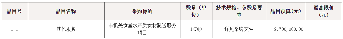 项目名称:市机关食堂水产类食材配送服务项目