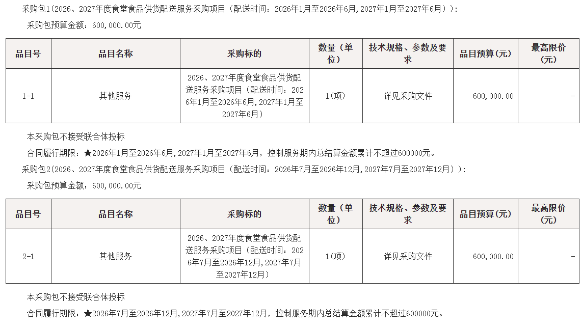 2026、2027年度食堂食品供货配送服务采购项目竞争性磋商公告