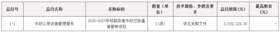 2025-2027年桂城街道市政过街通道管养项目采购项目的潜在供应商应在广东省政府采购网https://gdgpo.czt.gd.gov.cn/获取采购文件,并于 2025年12月22日 09时00分 (北京时间)前提交响应文件。
