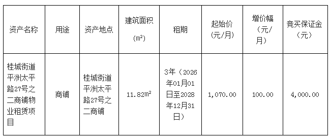 > 南海桂城街道平洲太平路27号之二商铺物业租赁项目