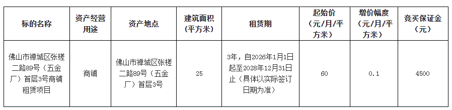 4.产权证照情况:有产权证照(竞买人应充分考虑其风险,一经存入竞买保证金即表示承认、接受本项目的现状,愿意按约定支付租赁价款和遵守租赁合同的约定)。