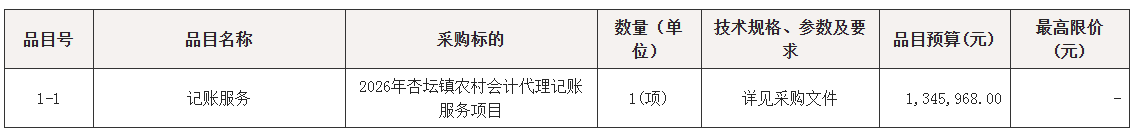 2026年顺德区杏坛镇农村会计代理记账服务项目采购项目的潜在供应商应在广东省政府采购网https://gdgpo.czt.gd.gov.cn/获取采购文件,并于 2025年12月24日 09时00分 (北京时间)前提交响应文件。