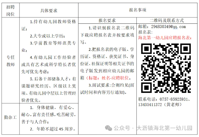 南海大沥镇海北第一幼儿园招聘工作人员多名