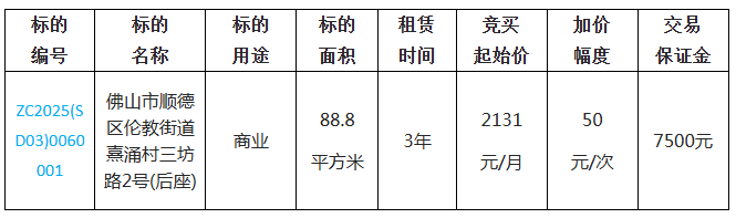 佛山市顺德区伦教街道熹涌村三坊路2号(后座)公有物业公开招租项目