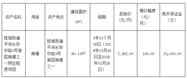 南海桂城街道平洲永安中路3号首层商铺之一物业租赁项目